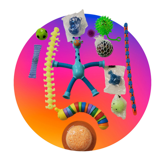 Fidgets are small, handheld toys designed to provide sensory stimulation and help relieve stress or anxiety. They come in various shapes and textures, including spinners, cubes, squishies, and stretchy toys.